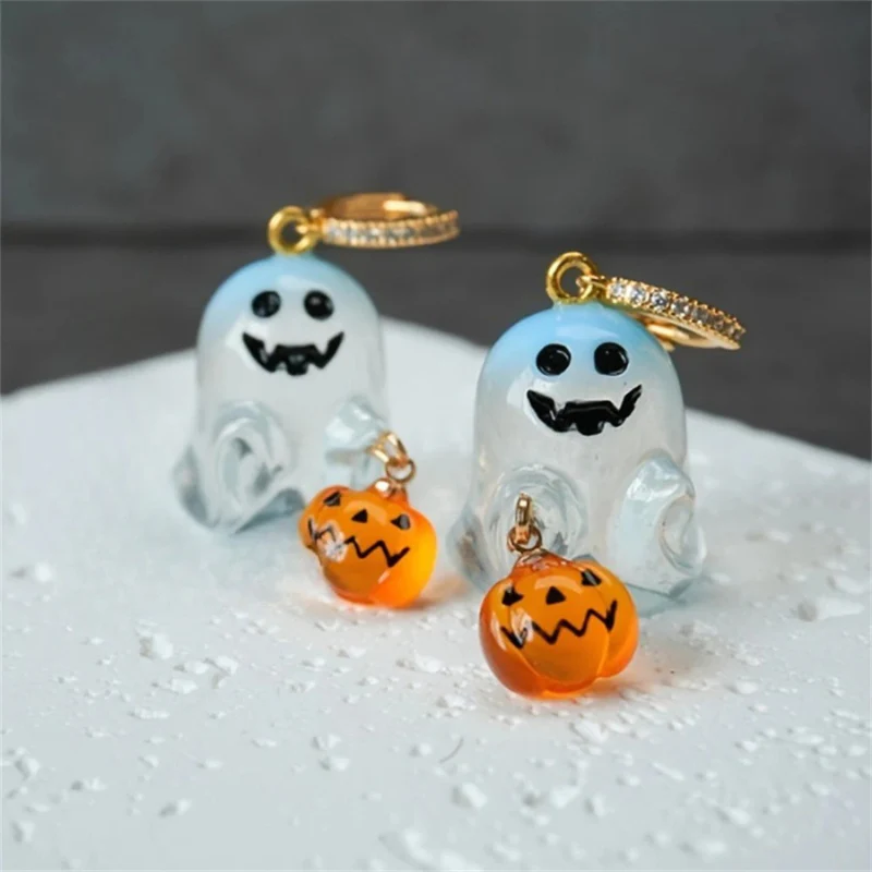 Tiny jack-o’-lanterns swing from gold-tone huggies, glowing with rhinestone sparkle that’s just spooky-cute enough for October nights. The kind of earrings that make your outfit scream Halloween (in the best way).